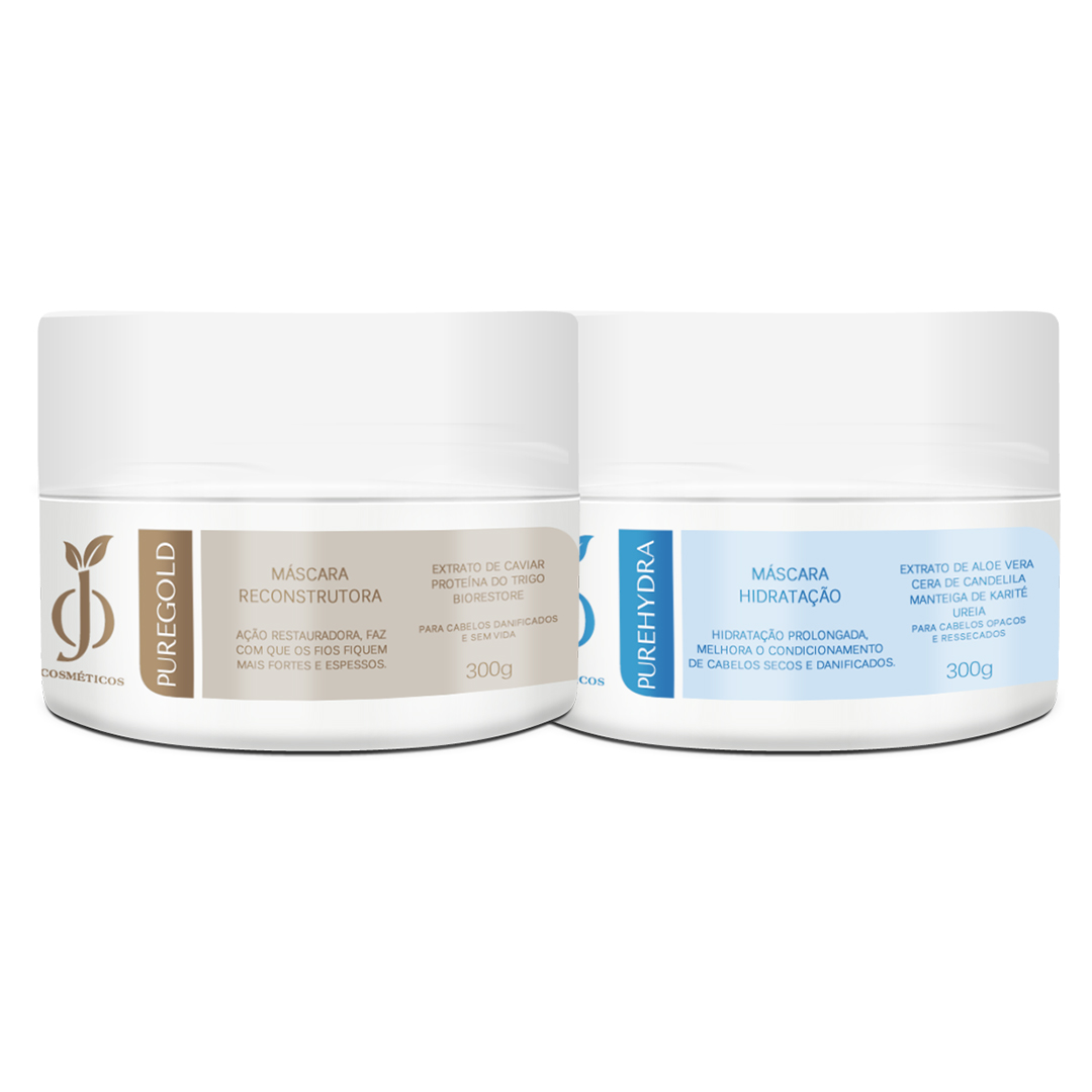 A máscara de reconstrução PureGold contém uma combinação exclusiva de ativos, incluindo extrato de caviar, proteína do trigo e biorestore, que trabalham em sinergia para fortalecer e reconstruir os fios danificados, restaurando a vitalidade e a resistência dos cabelos. A máscara de hidratação PureHydra possui extrato de aloe vera, cera de candelila, manteiga de karité e ureia, que fornecem uma hidratação intensa, nutrição e proteção contra o ressecamento, deixando os cabelos macios, sedosos e com brilho.